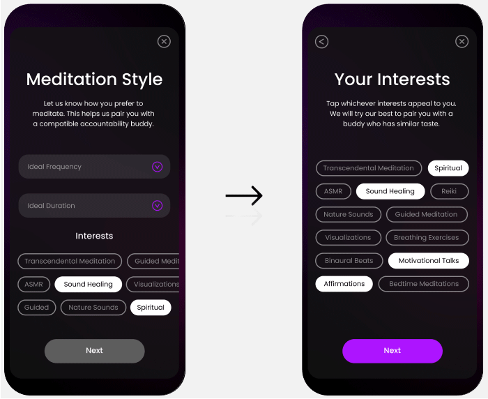 I wanted to find out why people eventually break their meditation habit and create a mobile experience that will encourage users to stay motivated in multiple ways.